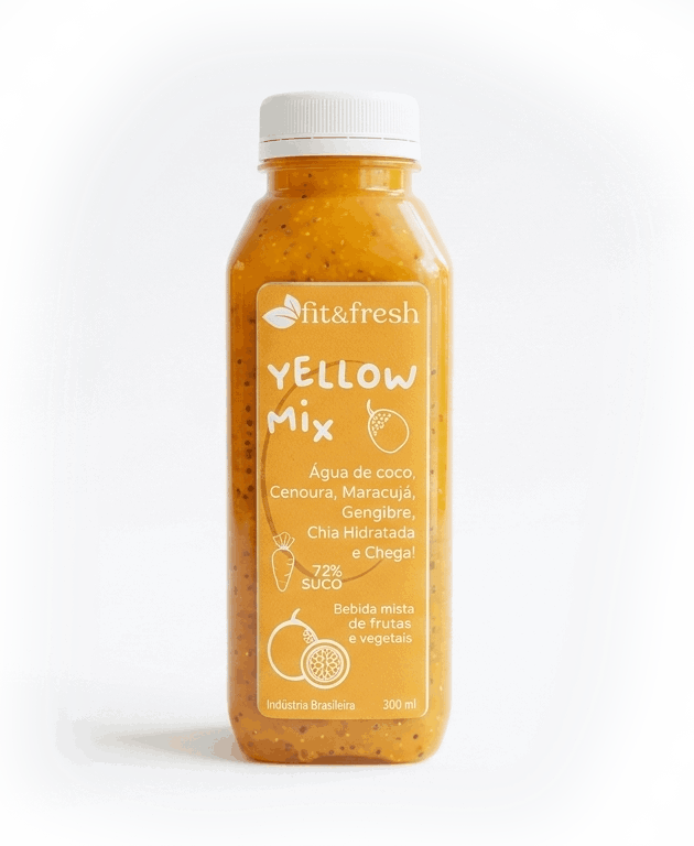 O Yellow Mix da Fit&Fresh é o equilíbrio perfeito entre o frescor da água de coco, a vivacidade da cenoura e o sabor exótico do maracujá, tudo com a energia do gengibre e a textura da chia hidratada. Uma combinação “e chega!” para quem quer um mix funcional e delicioso.